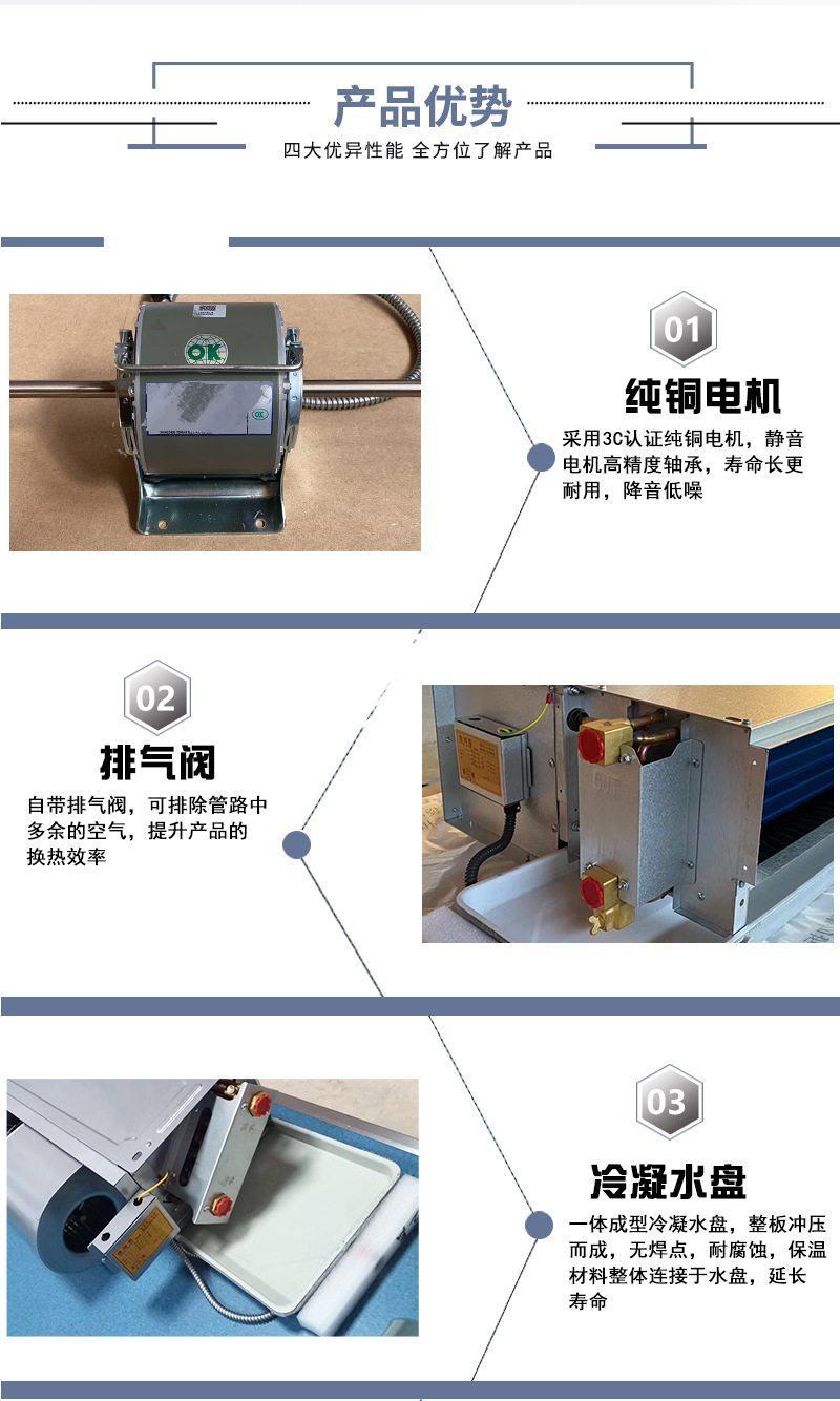 風機盤管是中央空調理想的末端產品,由熱交換器,水管,過濾器,風扇,接水盤,排氣閥,支架等組成,