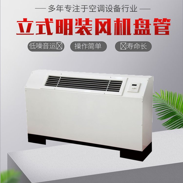 立式明裝風(fēng)機(jī)盤具有管效率高,能量足,風(fēng)量大,噪音低,安全可靠,壽命長(zhǎng)的優(yōu)點(diǎn),是明裝風(fēng)機(jī)盤管。